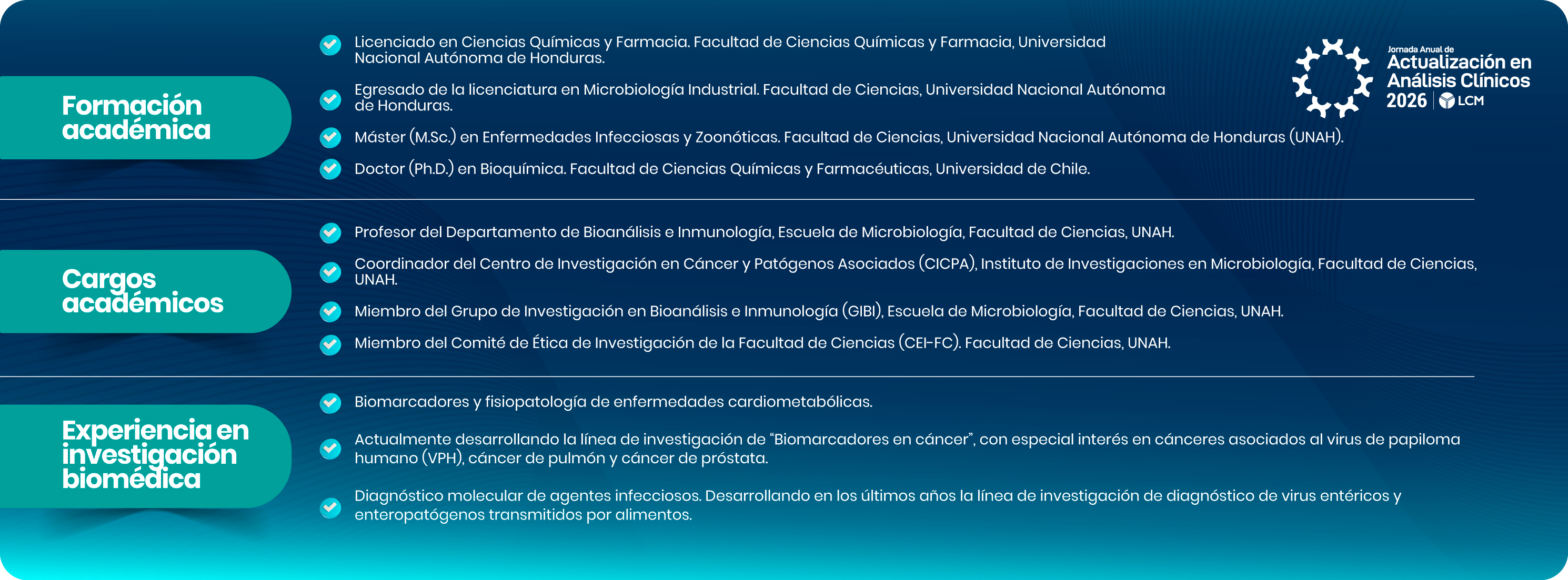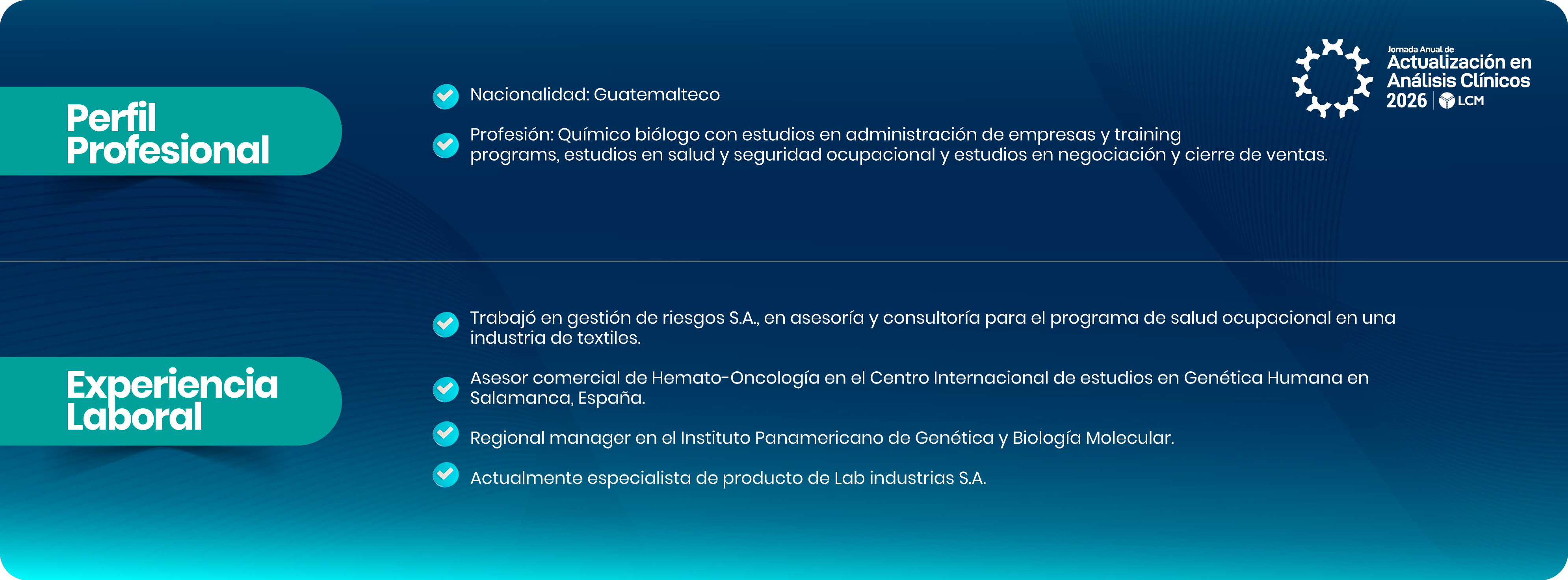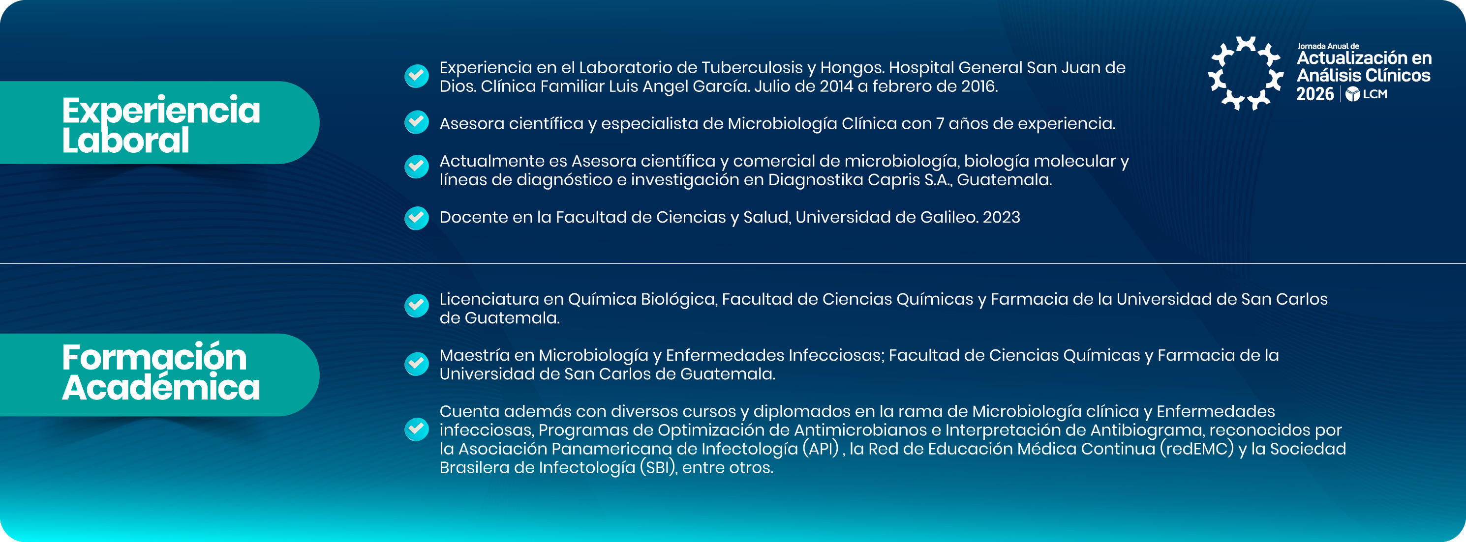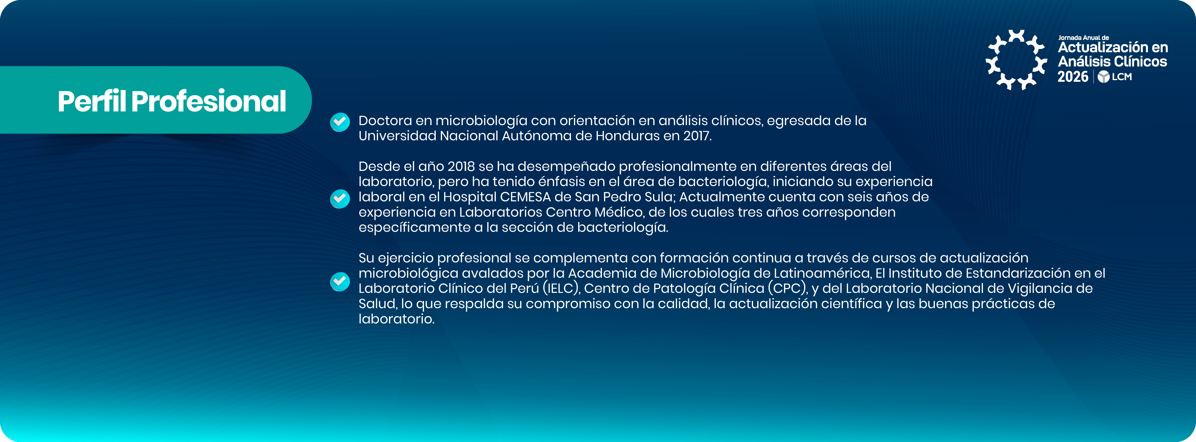 Proporcionar a los profesionales del campo de Análisis Clínicos la oportunidad de actualizar sus conocimientos, conocer nuevas herramientas y tendencias en este campo de las ciencias tan dinámico, fortaleciendo las relaciones con nuestros aliados estratégicos.